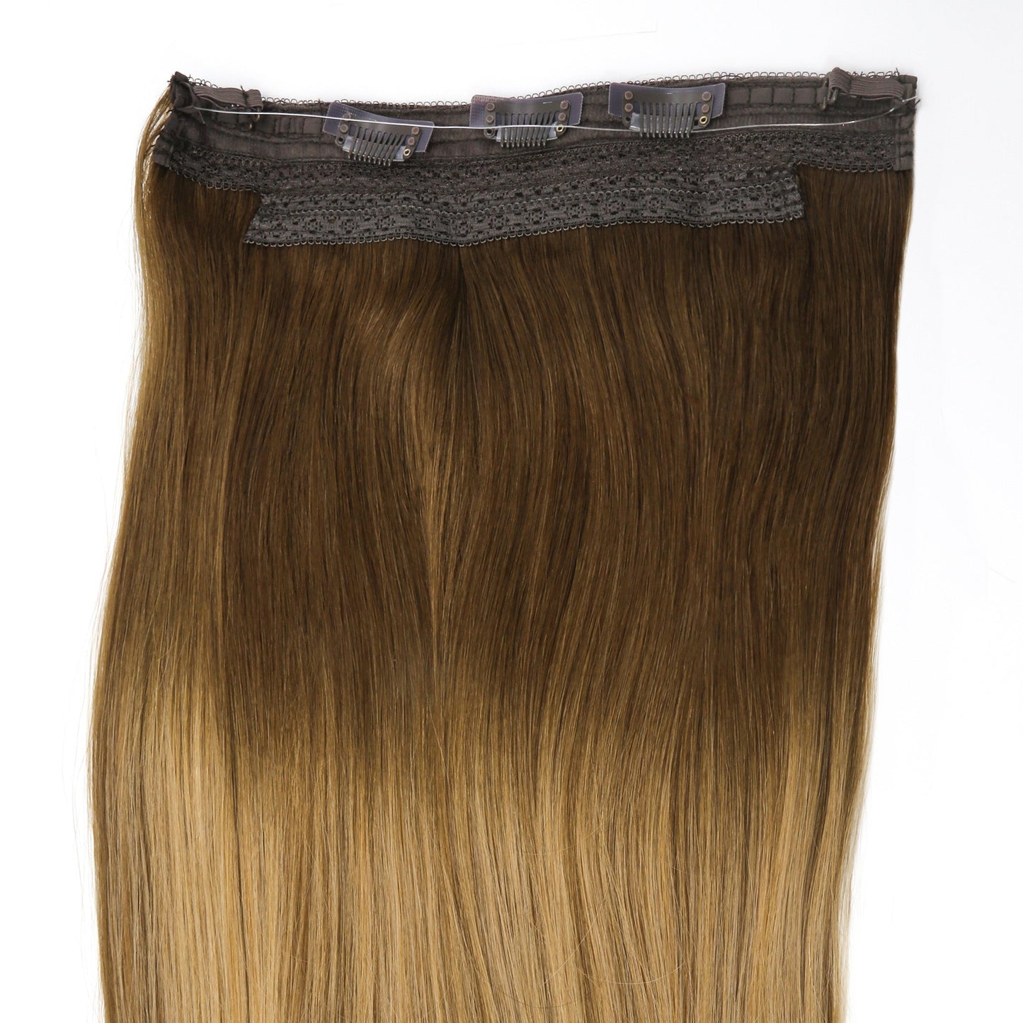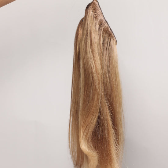 AquaLyna's "Aura" stands as a pinnacle in hair extensions, meticulously crafted from 100% human Remy hair for an unmatched natural look and feel. Designed with absolute comfort in mind, "Aura" offers effortless fitting, application, and removal, ensuring a seamless addition to your hair routine. Instantly achieving captivating length and volume without damaging your hair, this extension boasts various invisible wire options, to fit your crown perfectly. What sets "Aura" apart is its detachable velcro clips, providing extra stability to prevent any slippage, ensuring a secure and confident wear all day long.