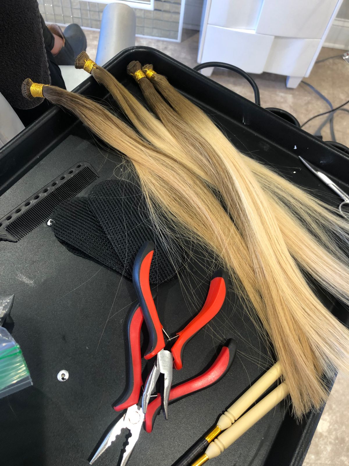 Hand Tied Wefts should never be split or cut width-wise. Our extensions use a special installation method that keeps the wefts intact.